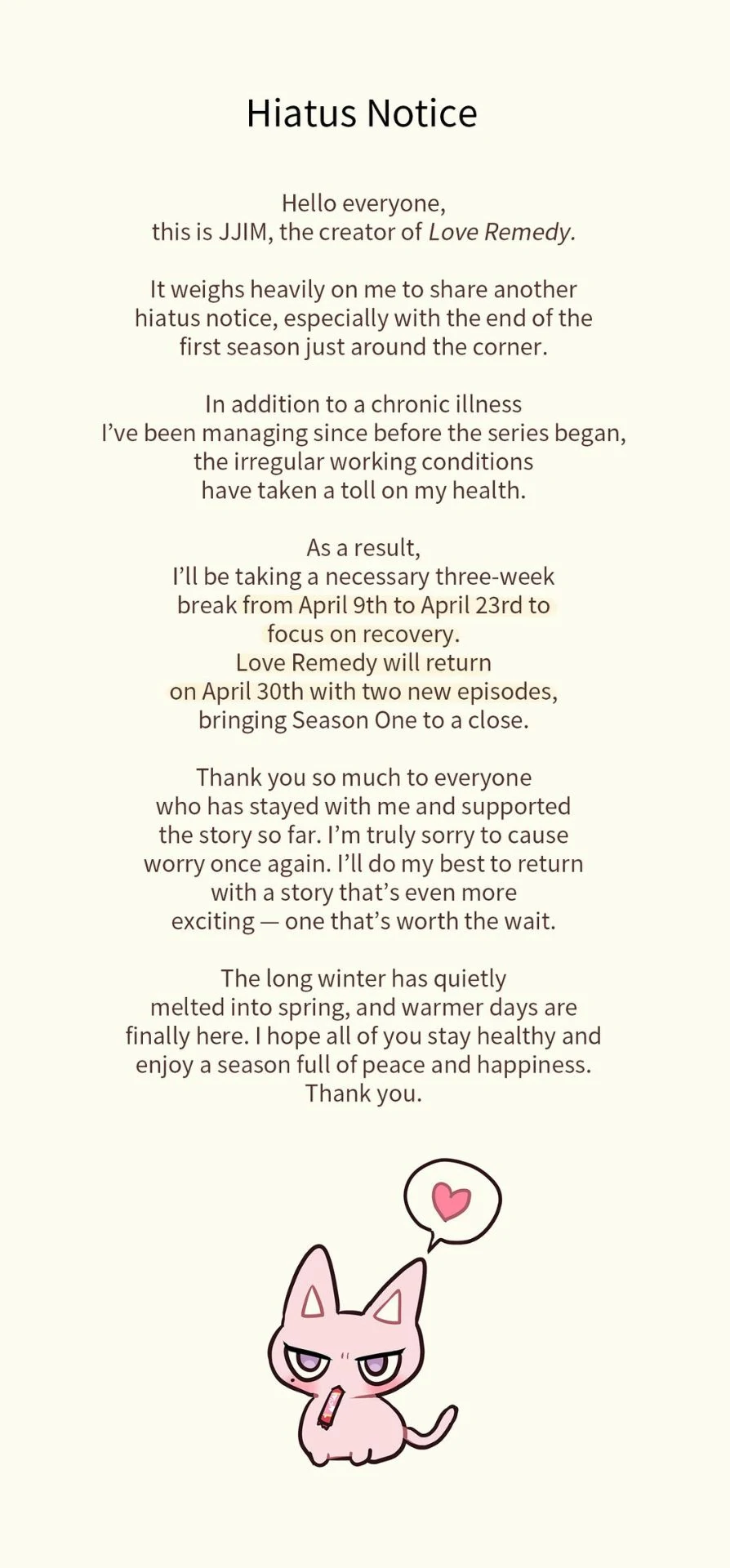 LOVE REMEDY [Zinchan] - Hiatus