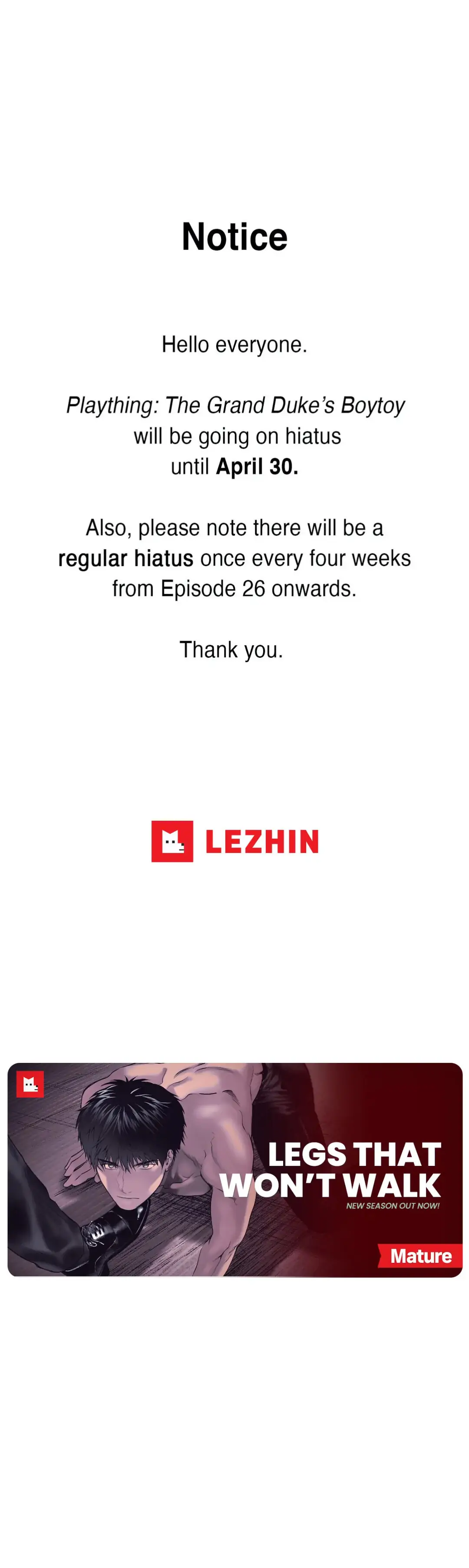Comments for chapter "Hiatus Notice"